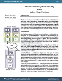 Much of the security documentation from Adobe is focused on the Flash Player client. There is a lack of comprehensive information about security for the entire Adobe Flash Platform. Michael Slinn, a well-known enterprise Flash Platform expert has produced a detailed roadmap, interviewed Adobe technical staff, reconciled the documentation sources and cross-referenced the information with well-known security experts.