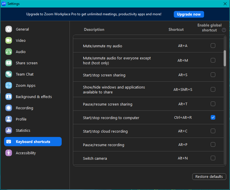 Once the Settings menu of the Zoom app was displayed I visited the following menu items: