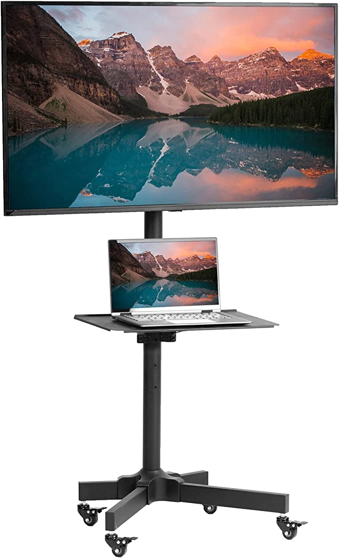 VIVO Mobile TV Cart STAND-TV04M for 13" to 60" Screens up to 55 lbs, black, with shelf, locking wheels, max VESA 400x400