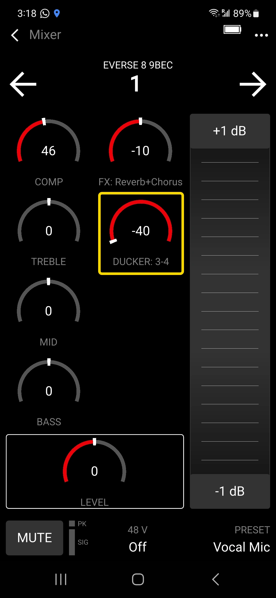 The setting for the ducking feature worked backwards from what I expected. Dial the ducking control fully counterclockwise on both channels to disable it.