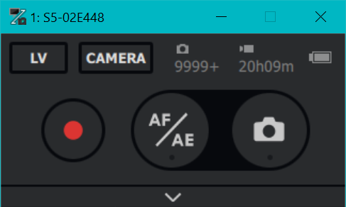 Now the Lumix Tether main window appears, but it is only 700 pixels high, as shown to the right.