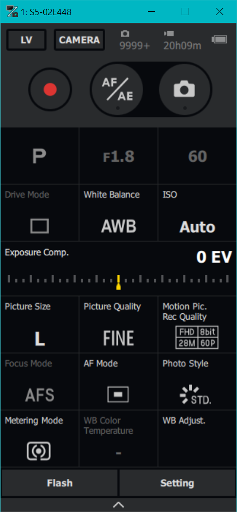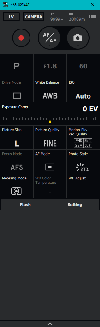- Launch Lumix Tether again and notice it is larger. The second monitor on my computer is a touch-sensitive Dell 24" P2418HT monitor. When viewed on that monitor, the icons are large enough to operate with my fingers. Happily, the icons appear at the same size on the 4K monitor as well.