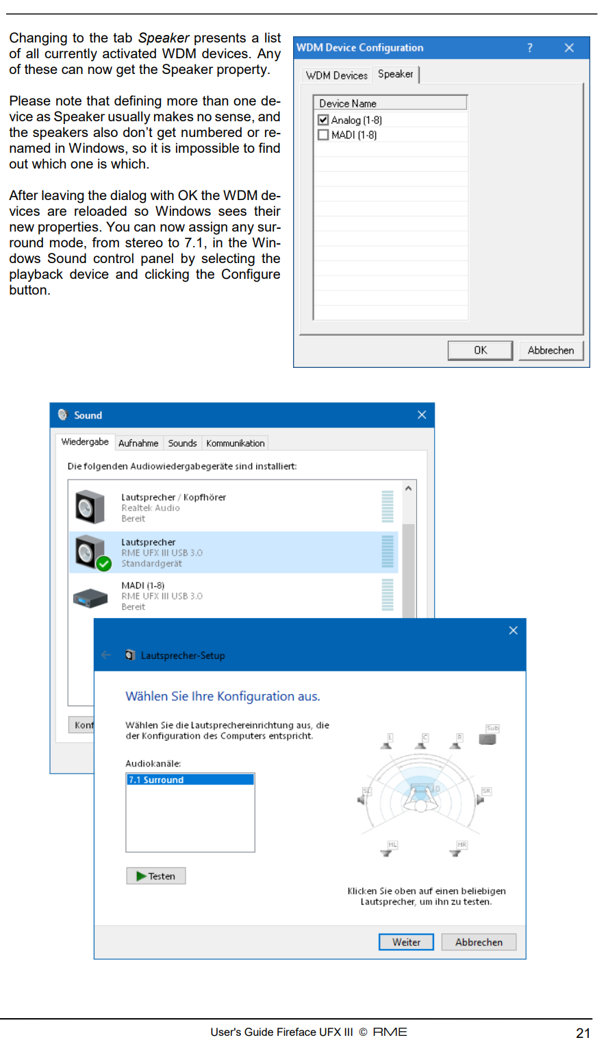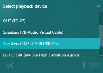 Looking at the Windows audio devices in the desktop tray, we can see that RME UFX III USB 3.0 has been restored.