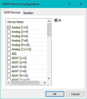 My speakers are connected to Analog outputs 1 and 2, so I enabled that here: