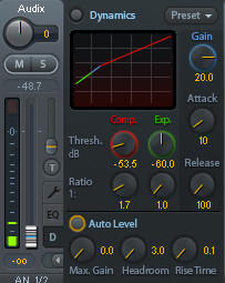 I discovered through trial-and-error that enabling the Auto Level button really helped the presense of my electric guitar when plugged into that channel. I set Max Gain to 12, Headroom to 8.0 and Rise Time to 0. This made the electric guitar sound much better. No direct box and no effects were used.