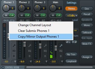 I right-clicked within the Phones 1 subpanel and selected Copy/Mirror Output Phones 1 from the pop-up menu.