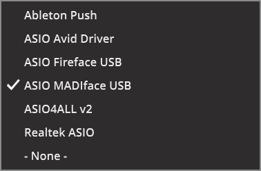 The RME Fireface UC and UFX use Audio device type ASIO Fireface USB, but the Fireface UFX III uses ASIO MADIFace USB: