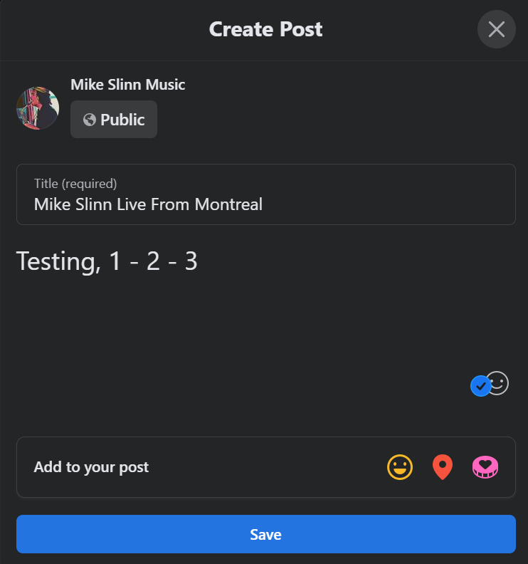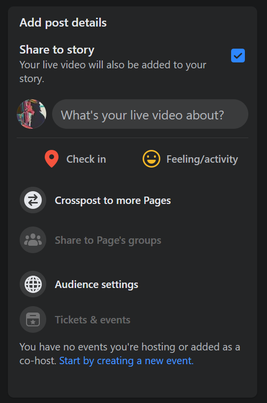 When you click on What’s your live video about? as shown above, another dialog box entitled Create Post pops up. You might have noticed that in the Steps We Will Follow image at the top of this section, step 5 is located in the bottom right corner, not really labeling anything. That is because this dialog box just appears unexpectedly.