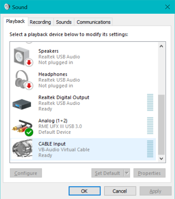 The weird thing about these instructions is that we just need a virtual audio cable because OBS Studio requires an audio device in order to receive audio. The fact that the virtual audio cable is not connected to anything might be surprising. Instead, the audio from Ableton Live is provided via a VST plugin in Ableton Live talking to another VST plugin in OBS Studio. This technique is not difficult, even though it is rather unique.