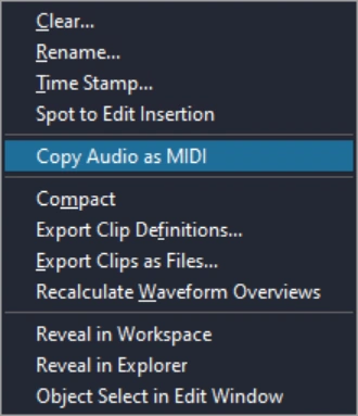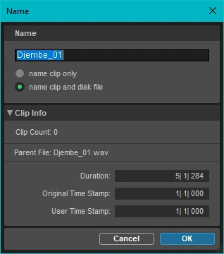 - Rename the audio clip using CTRL-ALT-SHIFT-R, which is the hotkey for Clip / Rename.