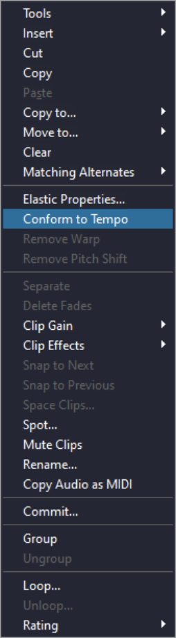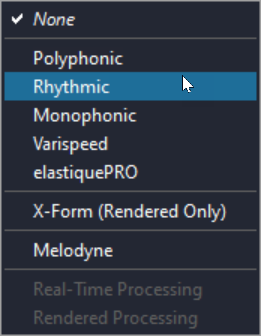 - Preferences / Processing / (Elastic Audio) Default Plug-in should set to Polyphonic.