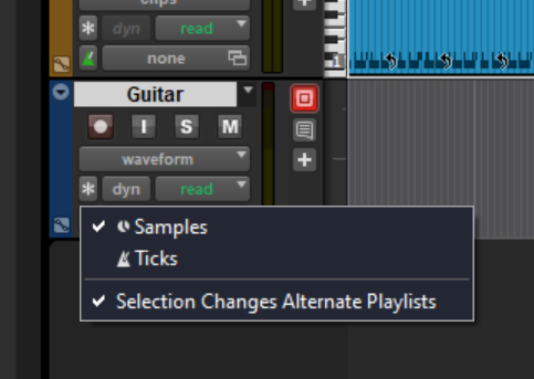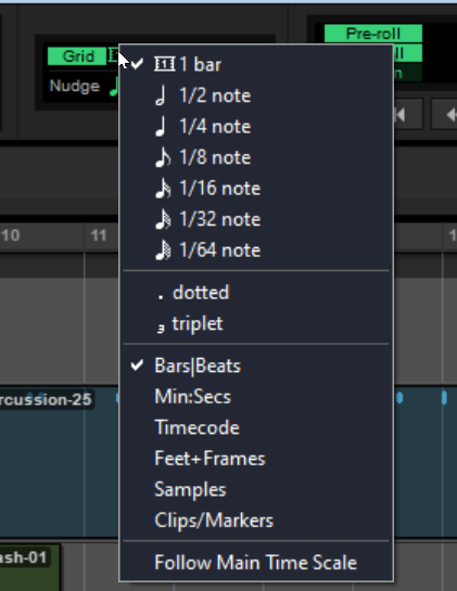 Clicking on the time base icon for a track will show the time base options, and you can change them: