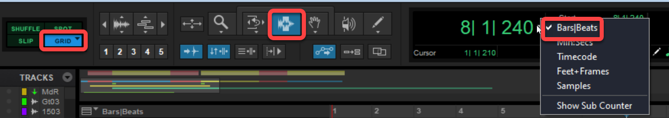 - Main counter set to Bars | Beats