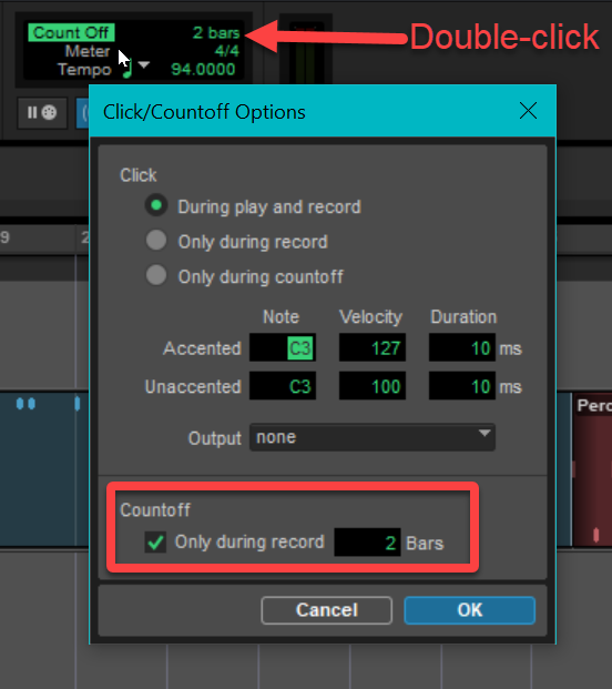 - Enable count off (2 bars, for recording)