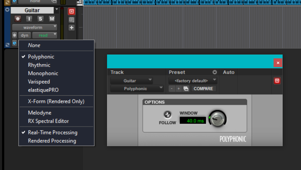 Modify the track’s Elastic Properties by clicking on the little genie bottle icon.