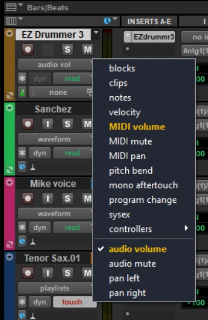 Virtual instrument tracks (for example, EZ Drummer 3) usually have their track view selector pull-downs set to block