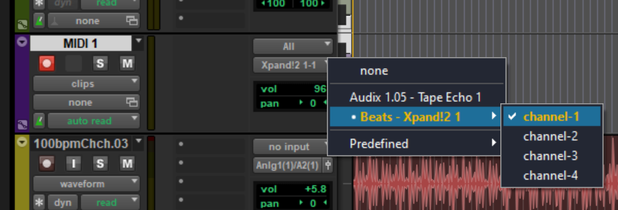 Assign the new MIDI track’s output to channel 1 of the instrument track that has Xpand!2 loaded.