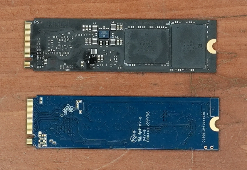 This is the bottom view. Notice how the larger-capacity SN750 has chips on the bottom.