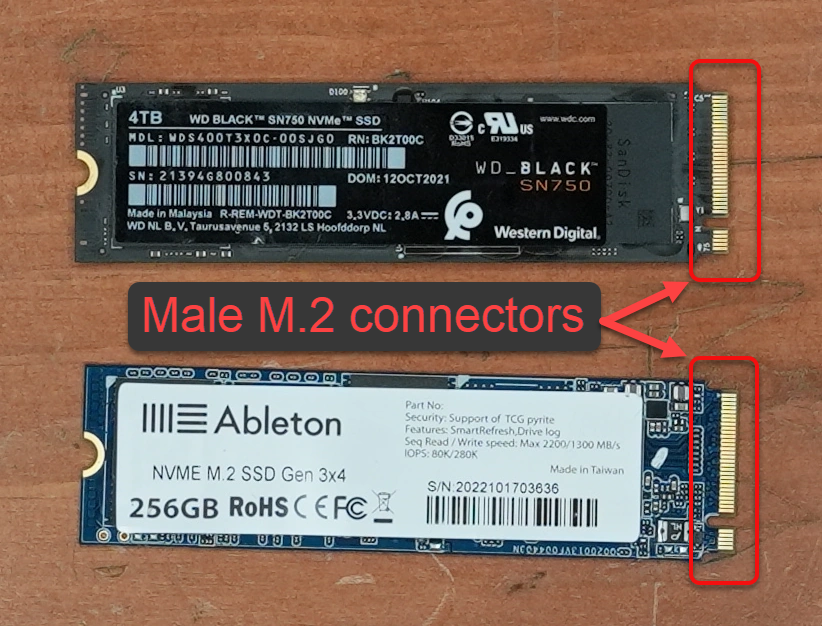 NVMe drives have a male M.2 connector on one end.