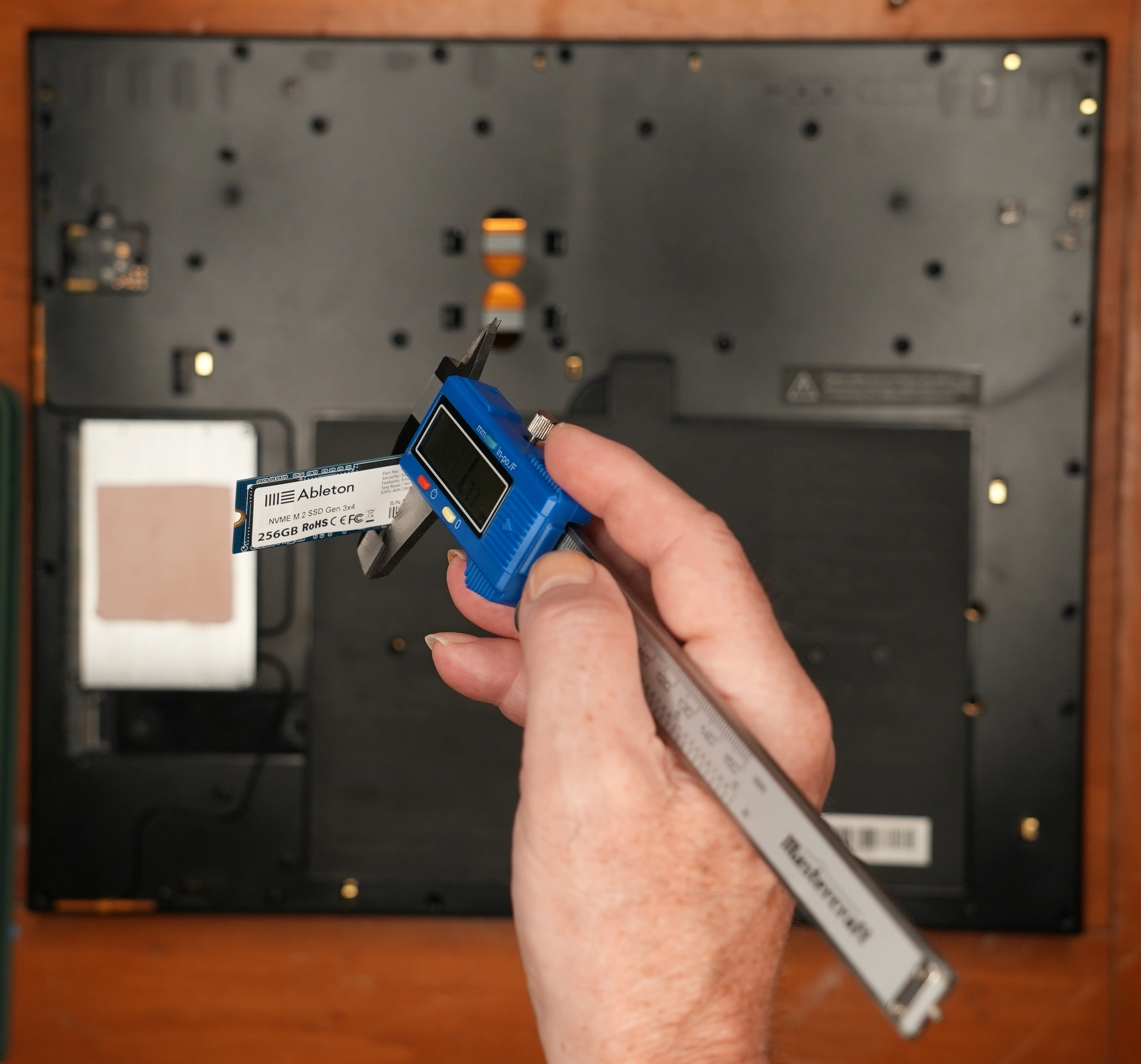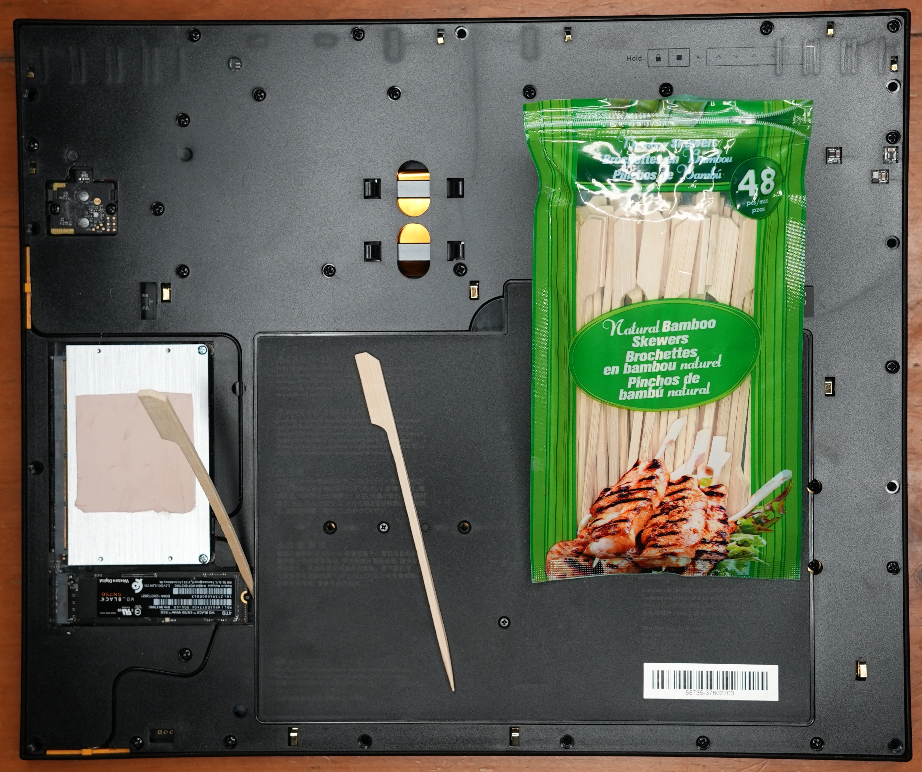 I trimmed the bamboo skewer flush with edge-cutting pliers, and the replacement NVMe drive was held in place nicely.