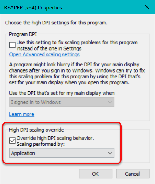 My DAW has two 4K monitors and a 1080P monitor and runs Windows 10. To make the Reaper menus appear at a decent size: