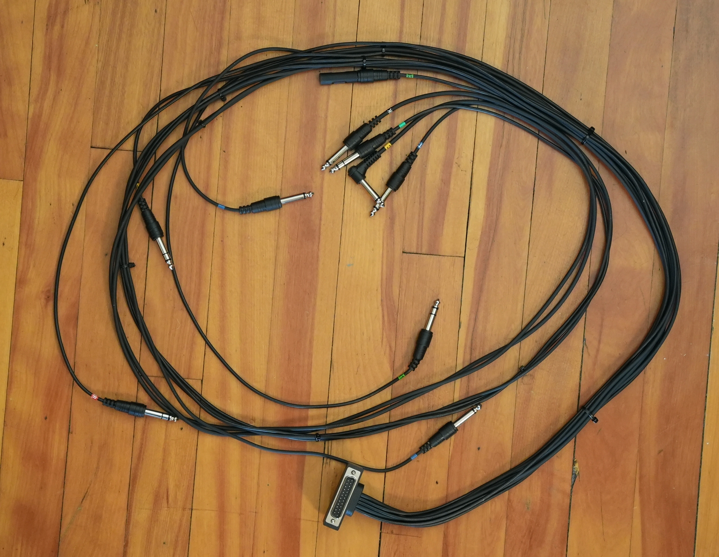 with 10 unshielded cables emanating from it that terminate in 5 x 1/4" TRS connectors and 5 x 1/4" TR connectors.