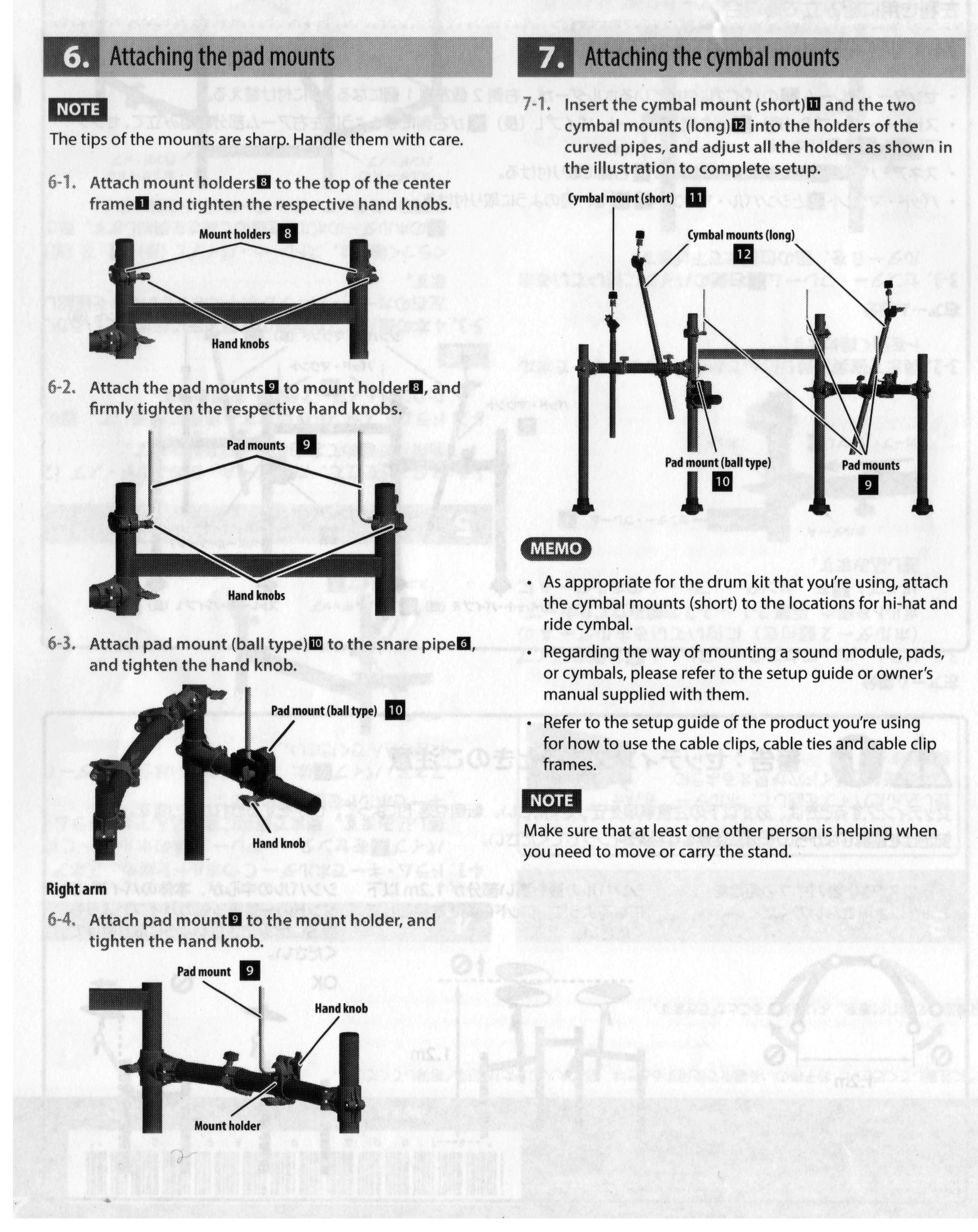 The VQD106 / VQD106PADS Setup Guide is labeled on the Roland website as being the Owner’s Manual, but it is mislabeled. Instead, this document gives highly abbreviated instructions for installing the components. The instructions are so abbreviated that they just add to the plethora of documents that a customer must reconcile before assembly. It also fails as an overview. Customers would be better served if this information was consolidated into the other documents.