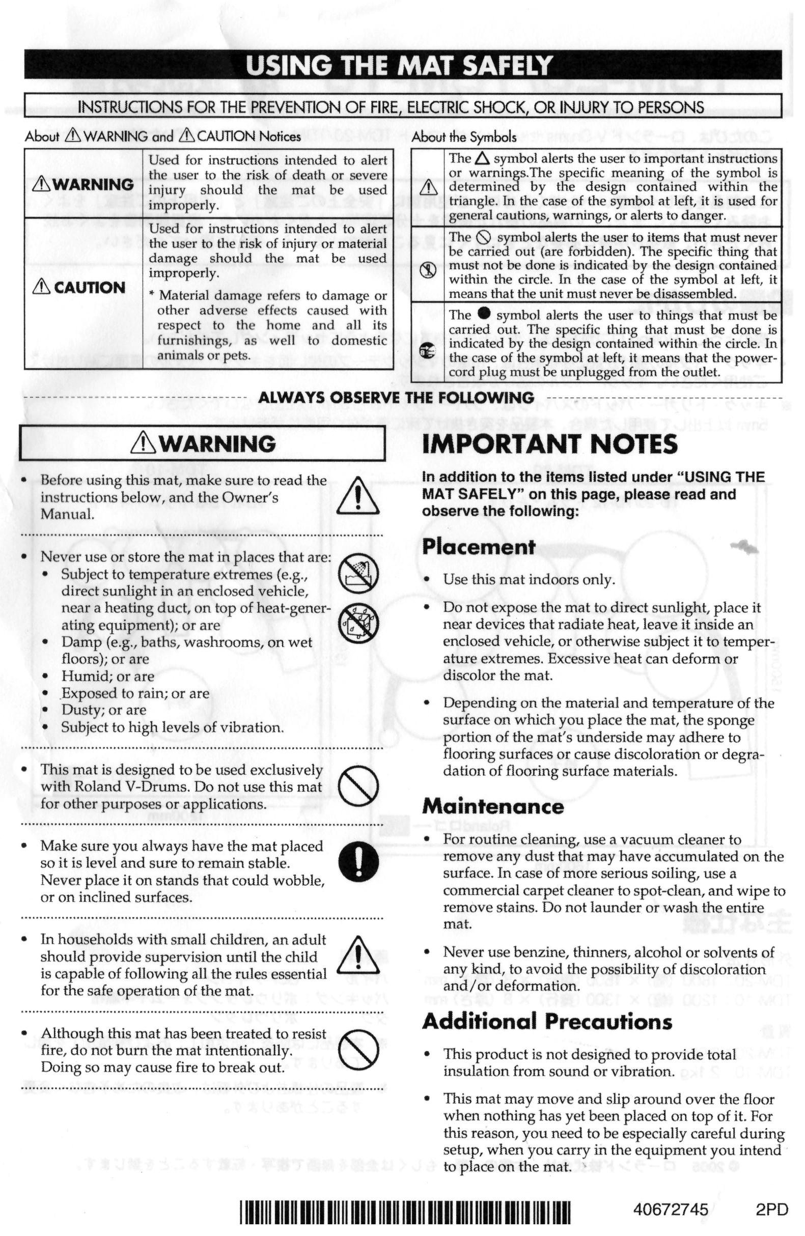 When the unit is placed on thick pile carpeting, the rubber feet may sink into the pile, reducing the noise-insulating effect.Although at first this might seem counterintuitive, the instructions make sense to me. You could imagine that we are making a multilayered low-noise Roland sandwich:- Use a drum mat on a hard surface.