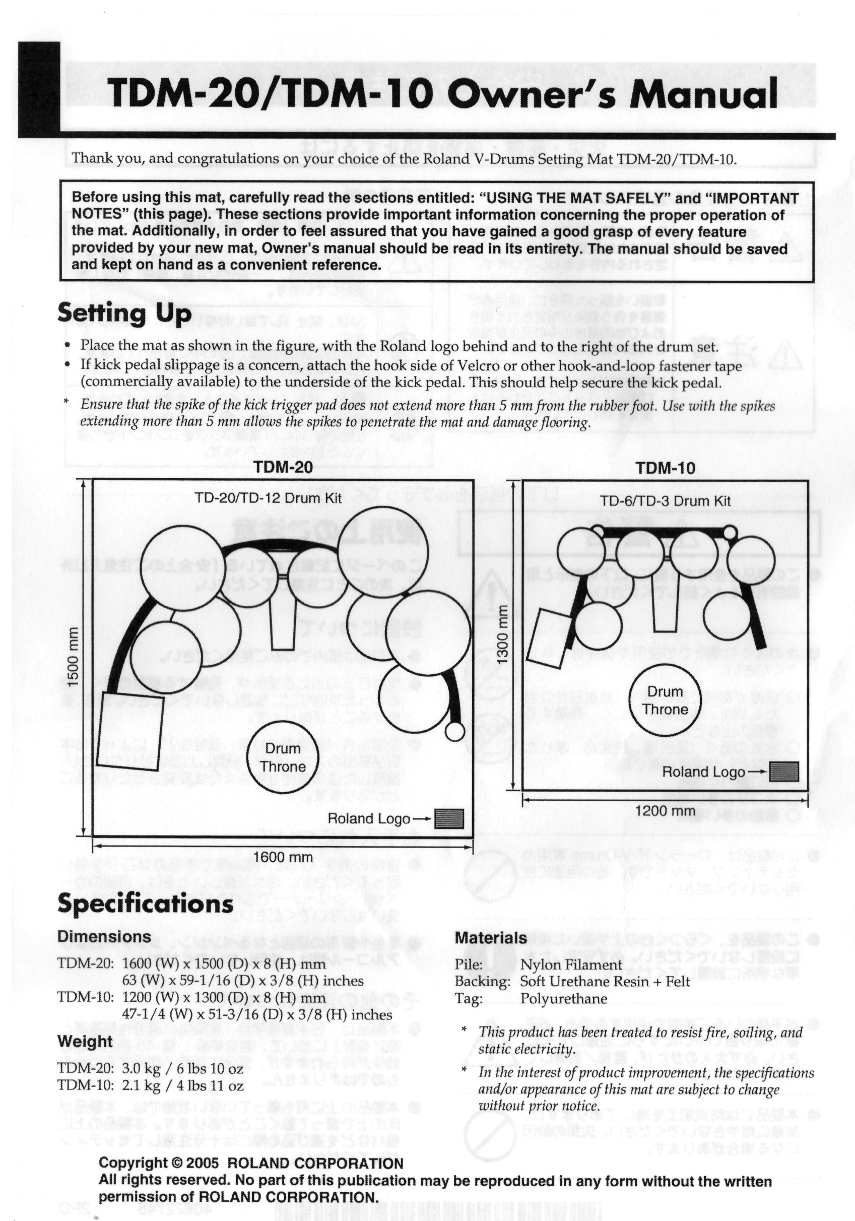 I unpacked the TDM-10 mat first because everything else needed to be positioned on top of it. I knew that this mat was precisely the minimum size that could hold all the components, including the throne. Inside the box containing the mat, the following sheet of paper was provided, which has been enlarged into two images for your reading pleasure. The images show the locations of all the major components, as they should be placed on the drum mat.