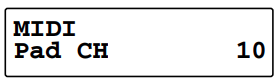 Press [PARAMETER>] many times until the MIDI Pad CH screen is displayed as shown