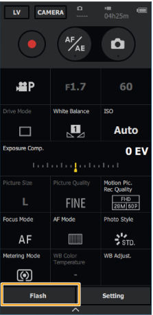 > Specifying Camera Settings from the PC: Changing the Flash Settings