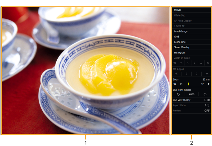 - Shows the preview image from the connected camera. You can also click the screen and set the focus point.