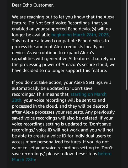 Amazon is ending the option to not send Echo voice recordings to the cloud