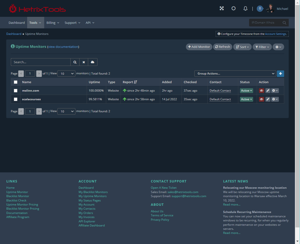 HetrixTools offers free availability monitoring for up to 10 websites. It was quick and easy to set up.