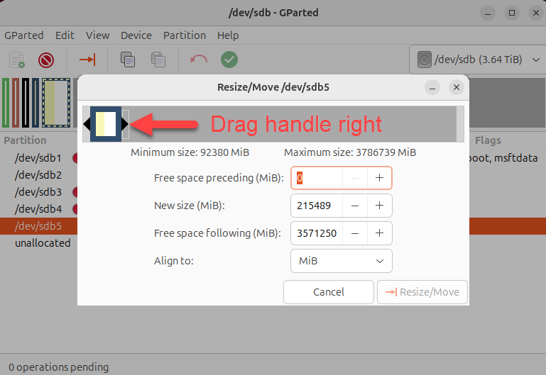 EXAMPLES You can run gparted from a command line and specify one or more disk devices.