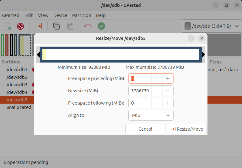 With the above in mind, let’s work through resizing the file system on a partition. We will consider both of the scenarios introduced at the beginning of this article.