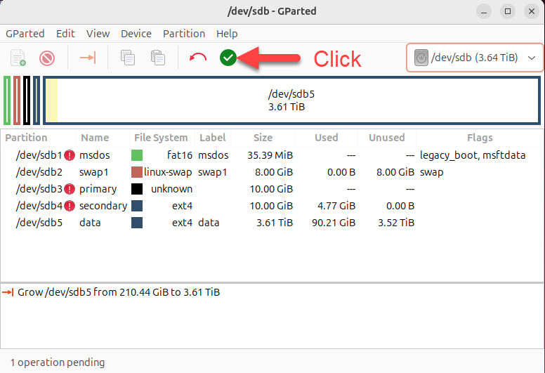 This means that if one of the steps in the above sequence fails, the remaining steps do not get executed. So the partition might resize, and the file system could successfully verify its integrity, but the file system resize could fail. If you clone a 256 GB NVMe drive to a 2 TB NVMe drive or larger, then you are likely to encouter this problem. The Recreating a File System section later in this article demonstrates the solution to that problem.