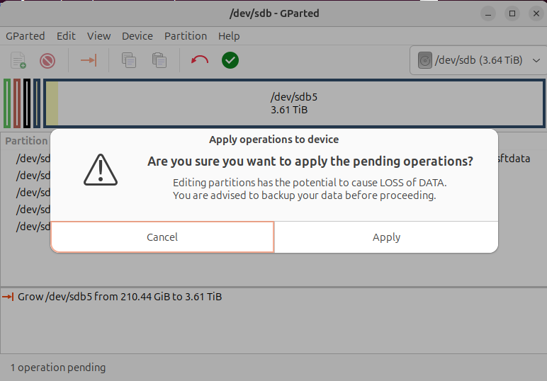 The gparted application is designed to enable you to edit par‐ titions while reducing the risk of data loss. The application is carefully tested and is used by the GParted project team. However, loss of data might occur due to software bugs, hard‐ ware problems, or power failure.