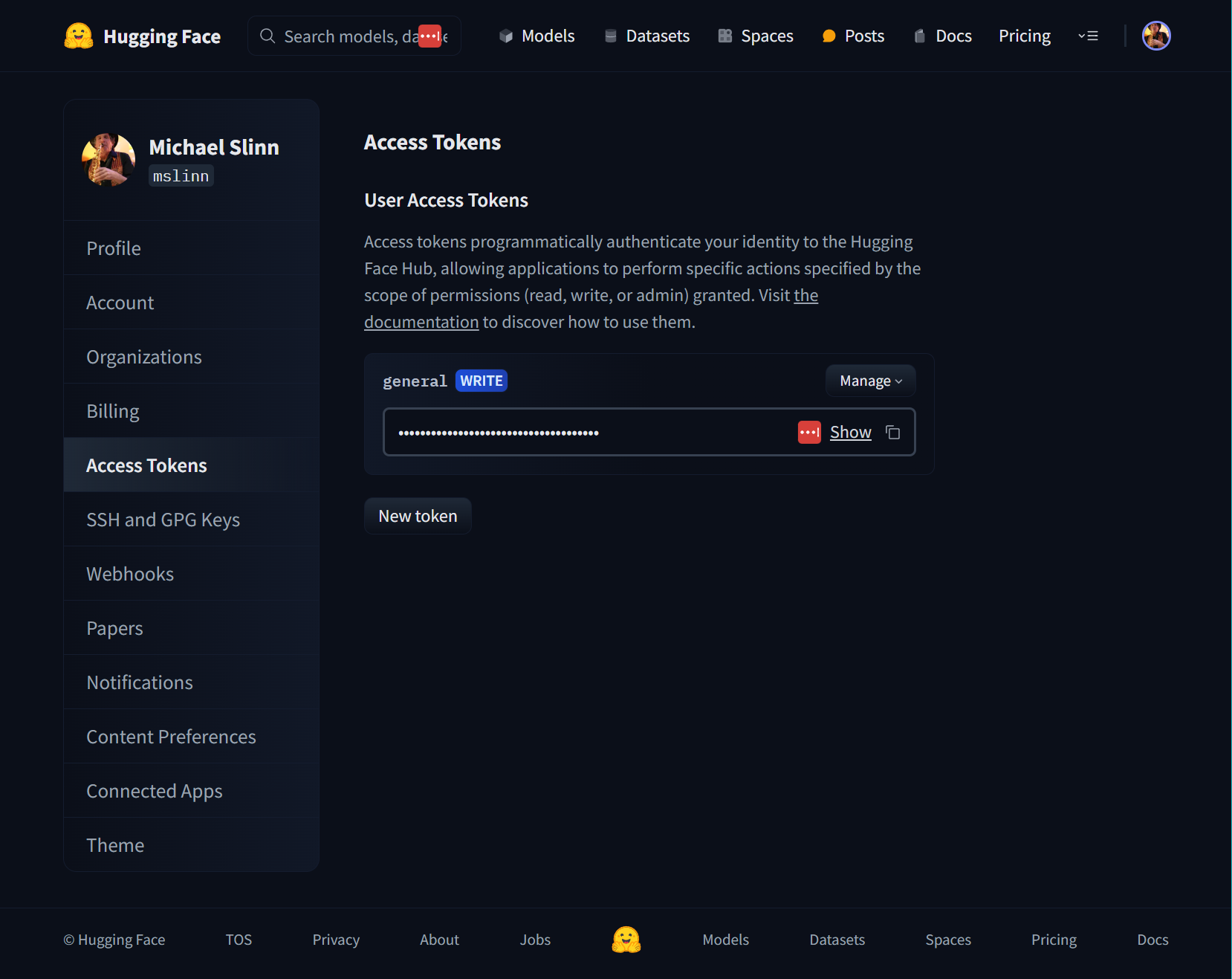 Your token has been saved to /home/mslinn/.cache/huggingface/token
