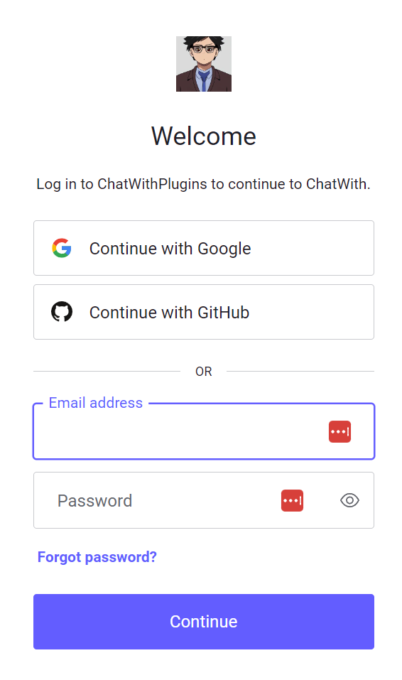 ChatWithPDF displayed the following unexpected login screen. Not a good user experience.