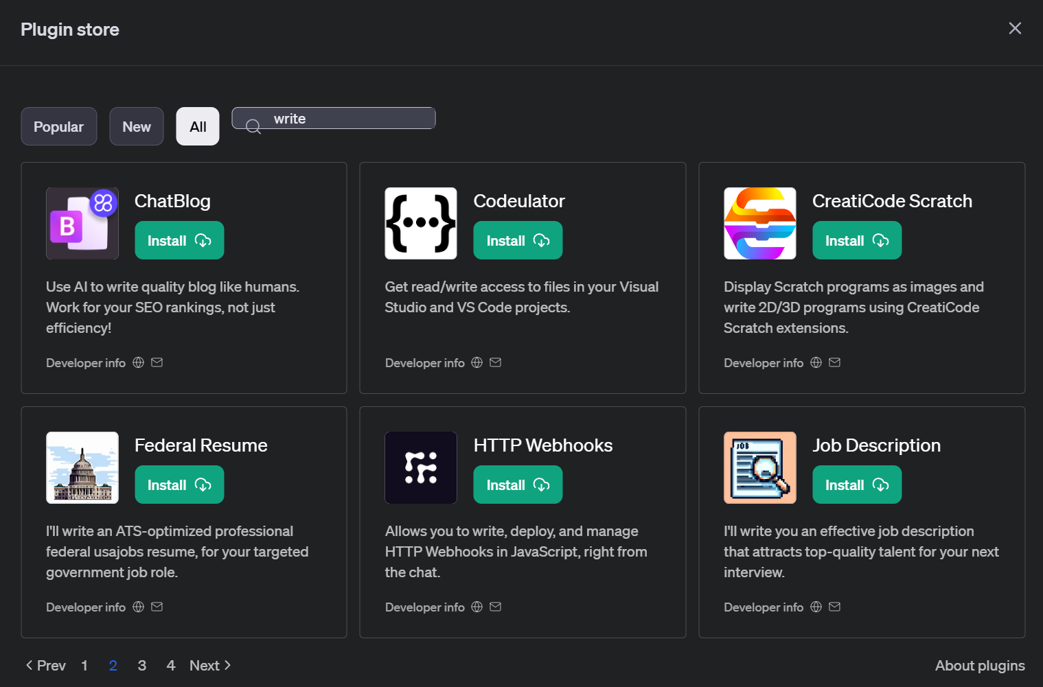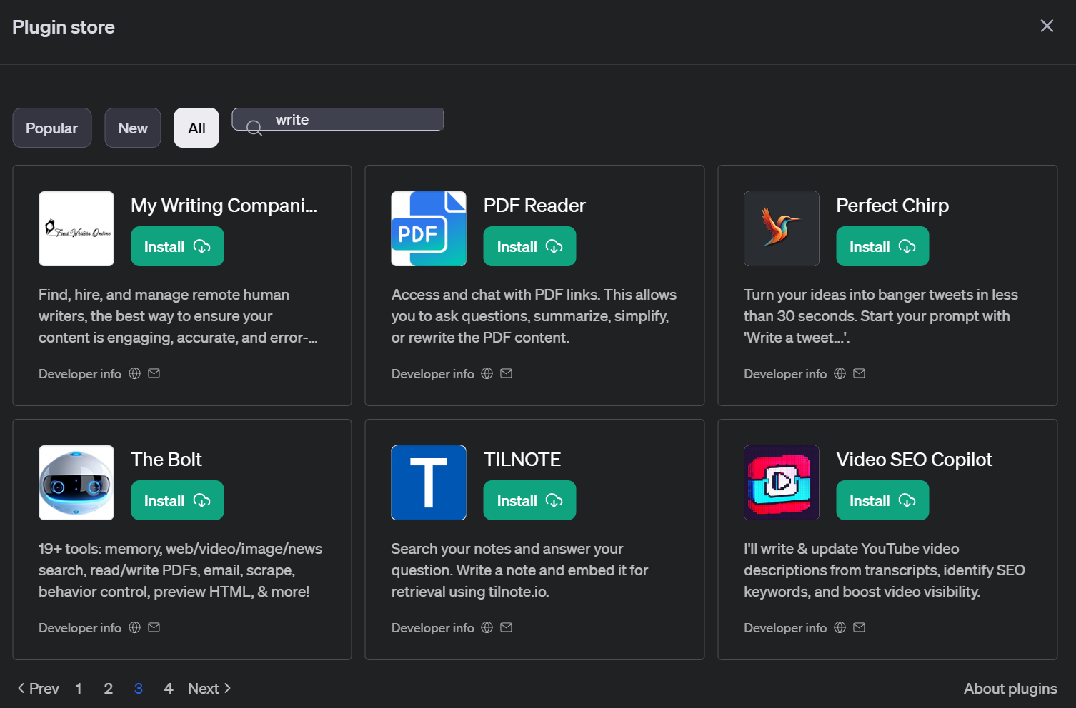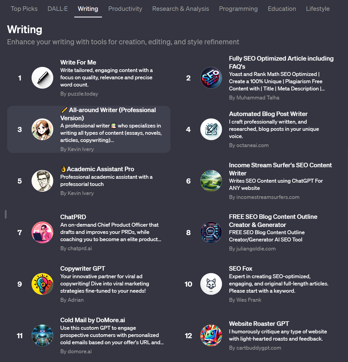 I was interested in the writing-oriented plugins. Here are the plugins highlighted as oriented for writing: