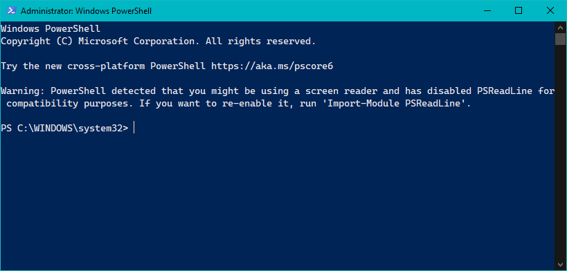so you could read the commands that I typed more easily. The commands that we will use are unaffected by the current directory.PowerShell (continued)PS C:\WINDOWS\system32> cd \ PS C:\>