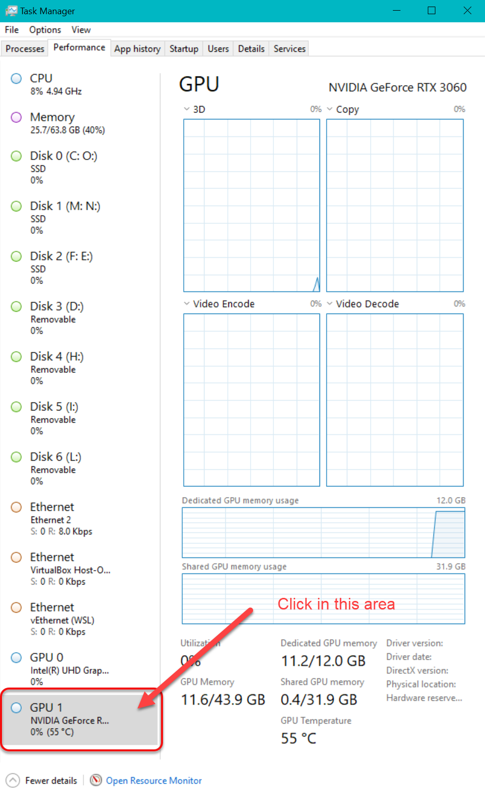 Now click on the GPU 1 area near the bottom left of the window.