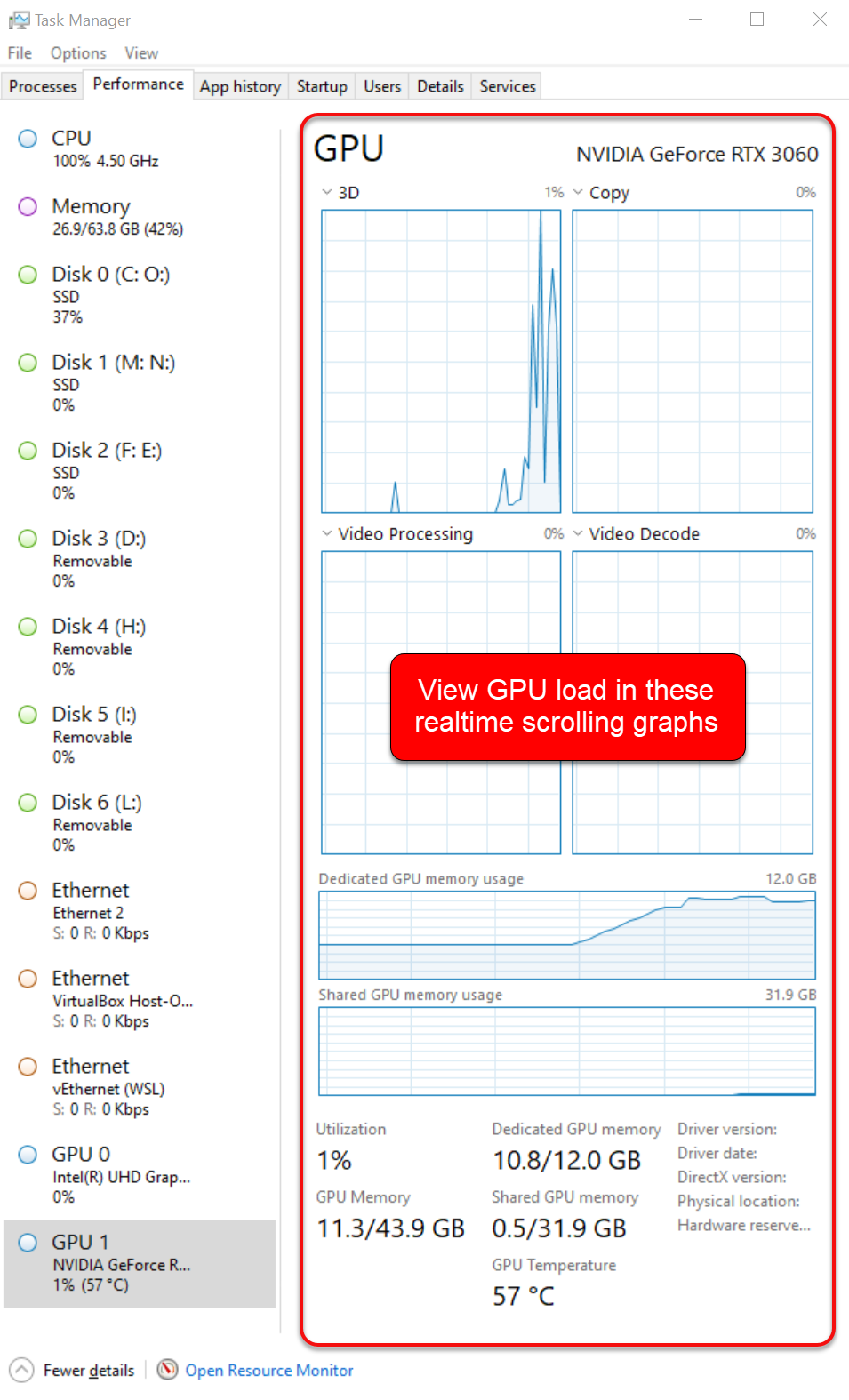 to view the GPU load in real time: