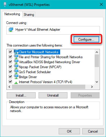 Yet another new window will open called vEthernet (WSL) Properties.