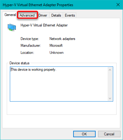 The previous window will close, and a new window called Hyper-V Virtual Ethernet Adapter Properties will open.