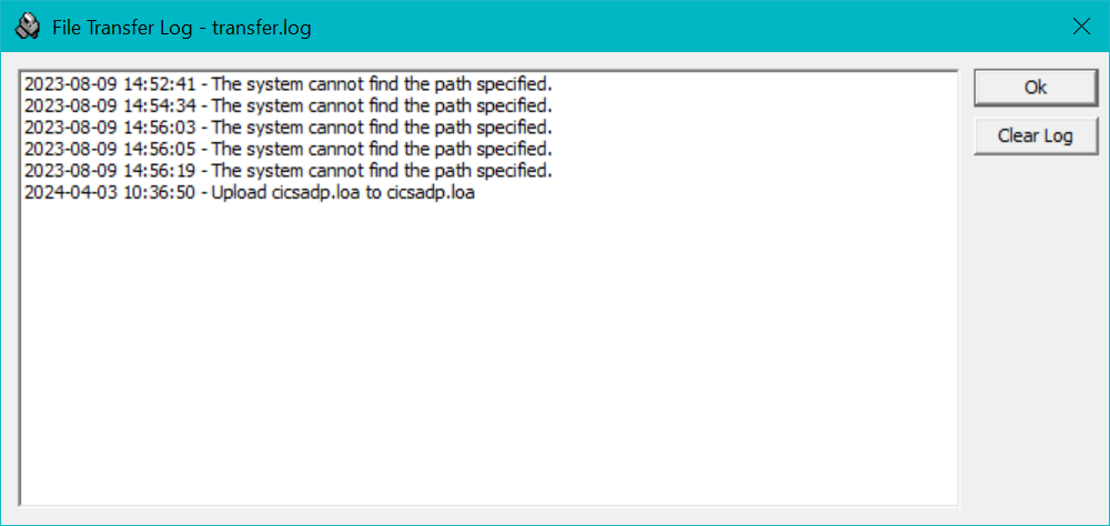 ftp> ls cicsadp.* 229 Entering Extended Passive Mode (|||13075|) 125 List started OK Volume Unit Referred Ext Used Recfm Lrecl BlkSz Dsorg Dsname USER12 3390 2024/04/05 1 1 F 80 80 PS CICSADP.CORSEQ USER10 3390 2024/04/05 16 16 F 80 80 PS CICSADP.CPYSEQ USER01 3390 2024/04/05 2 2 F 80 80 PS CICSADP.CSDSEQ USER13 3390 2024/04/05 2 2 F 80 80 PS CICSADP.JCLSEQ USER03 3390 2024/04/05 11 11 F 80 80 PS CICSADP.LOASEQ USER11 3390 2024/04/05 4 4 F 80 80 PS CICSADP.MACSEQ USER11 3390 2024/04/05 16 16 F 80 80 PS CICSADP.SRCSEQ USER10 3390 2024/04/05 2 2 F 80 80 PS CICSADP.TXTSEQ 250 List completed successfully.