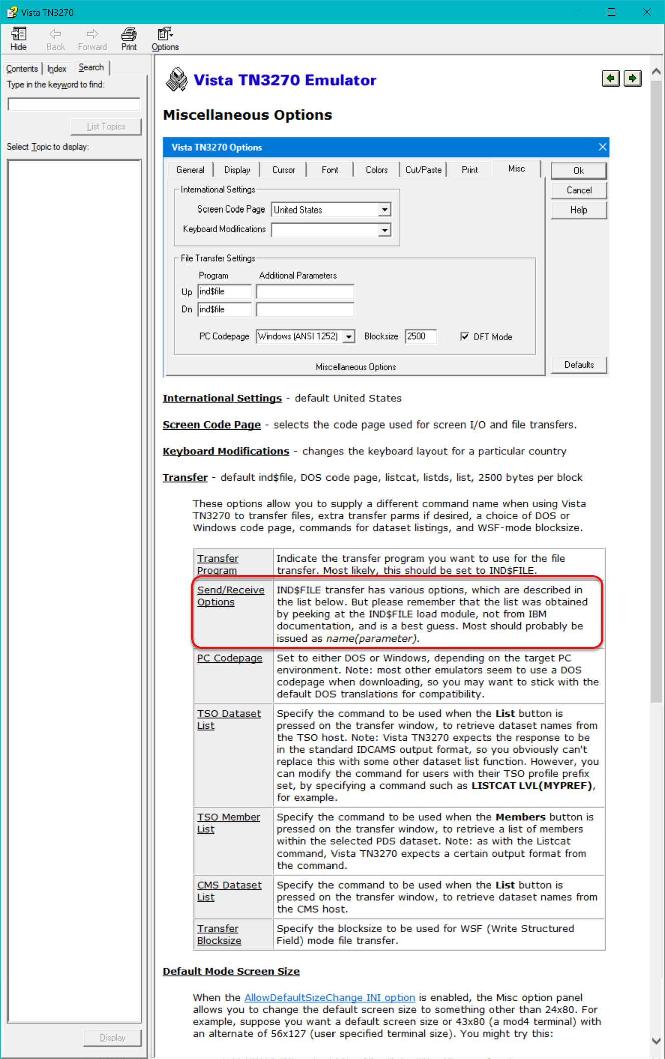 IND$FILE transfer has various options, which are described in the list below. But please remember that the list was obtained by peeking at the IND$FILE load module, not from IBM documentation, and is a best guess. Most should probably be issued as name(parameter).