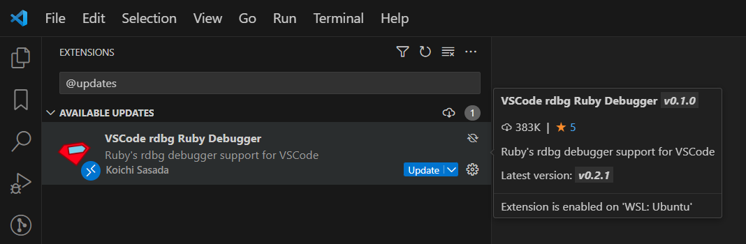 must be installed separately before the Visual Studio Code extension can debug Ruby code: