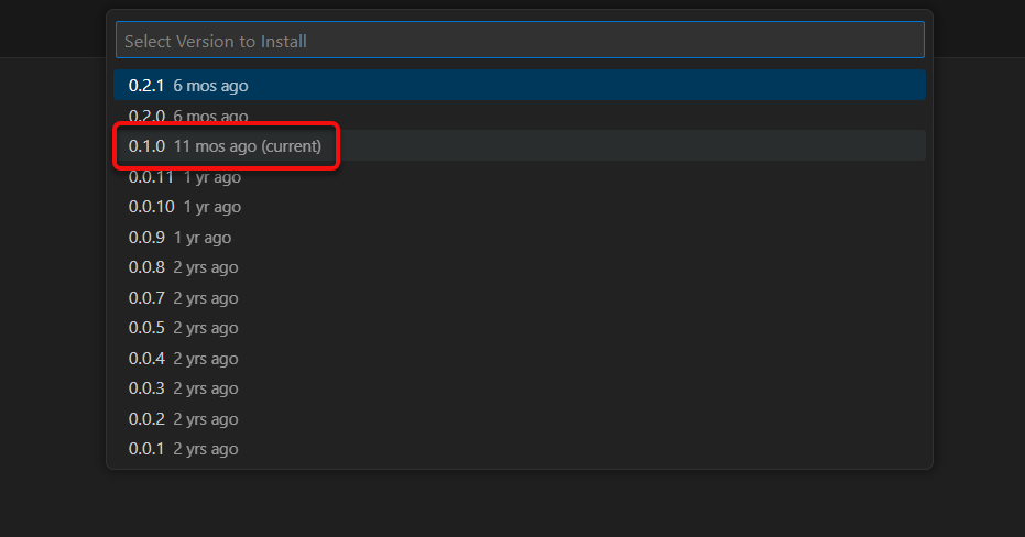 The Visual Studio Code Activity Bar will now show you all available versions of the extension.